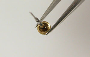 綿棒の軸を入れて試してみます。固定は出来そうですね・・。