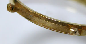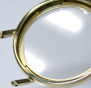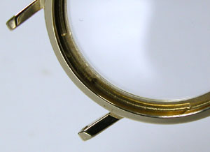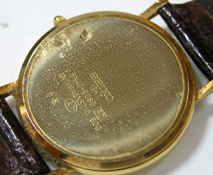 綺麗な文字盤ですが、これは18金ではありません。革ベルトを外すとやはりラグ部はご覧の通り。