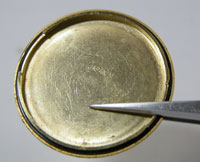 裏蓋を開けると耐磁プレートが見えます。これは乗せてあるのみですから摘み出します。綺麗なムーブメントですね。