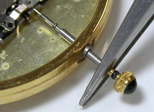 先ずは竜頭を抜きます。竜頭にはオニキスがさりげなく。