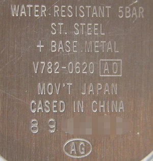 5気圧防水。こちら文字盤キャリバー。