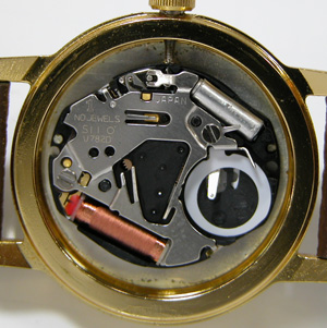 これがムーブメント。ケースの汚れを拭いて電池交換をします。