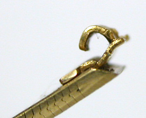 表から見た図。横からですが、この爪がどちらかに曲がればケースとベルトの間に隙間が空きます。