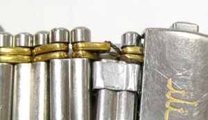 こちらがキャリバーです。ベルトはコマ1個1個がネジで留められており凝った作りです。