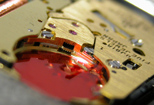 この爪で電池が留まっております。綺麗なムーブメントですから何カットか撮影してみました。