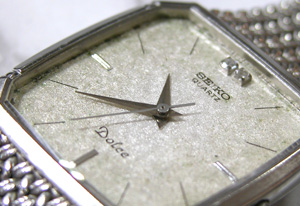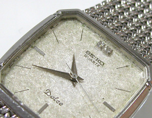 Dolce 9521-5210電池交換です。文字盤の焼けが気になりますね・・・かなりの湿気が入ったか?