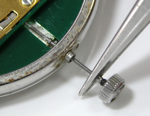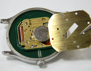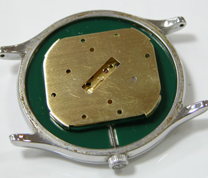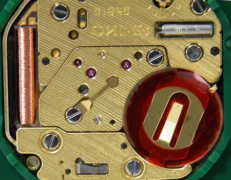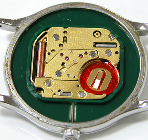 これがムーブメント。電池格納部をチェックします。
