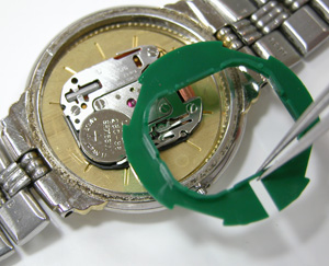 これで思い切ってケースを掃除する事が出来ます。これを洗浄機にかければ更に綺麗になる訳です。ムーブメントを戻して電池交換ですね。