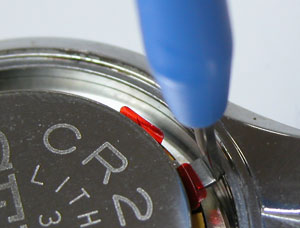 こういった所を掃除します。専用工具で電池をおこします。外すのは、この位置に決まっております。