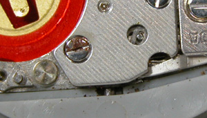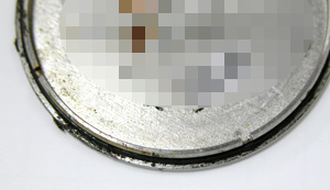 これがキャリバー。パッキンが溶けてボロボロ、これでは水が入ります。