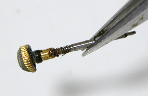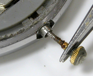 ネジにまでサビが浮いてますね・・・竜頭を抜いてみます。