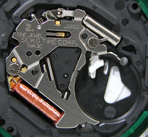 これがムーブメント、内部は綺麗な状態。”SEIKO TIME CORP” ですがEPSONと書いたムーブメントと同じですね。