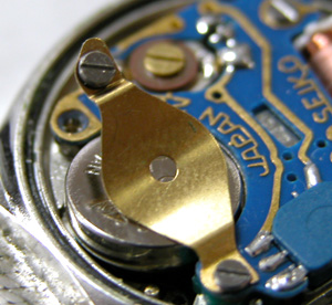 今の腕時計でこんなにも頑丈に電池を固定したものはありません。片方のネジを外して電池交換です。