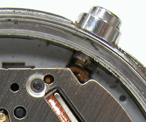 これがムーブメント。綺麗ですね・・・でもこのサビはいけません。ボタンは堅いままでお返し。