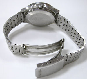当時では高額品であっただけに、ベルトも無垢バンド。バックルのアップライトなSEIKOロゴがキラリ!
