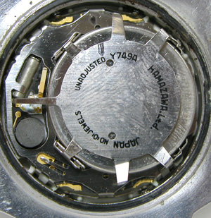 これがキャリバー。これがムーブメント、指紋だらけ。電池交換しても表示しなかったですね。