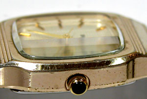 カットガラスが特徴のデザイン。裏蓋は”はめ込みタイプ”