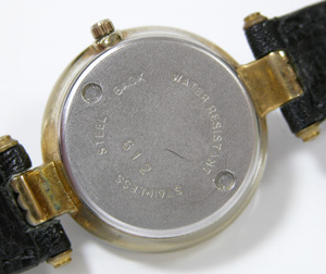裏蓋は・・・”はめ込みタイプ”?スクリューバック?オープナーが掛かる深さは十分ありそうなのと、回した跡があります。”はめ込みタイプ”を回しても壊れにくいですがスクリューバックをこじ開けたら変形しますから、先ずはスクリューバックと信じて回してみましょう。