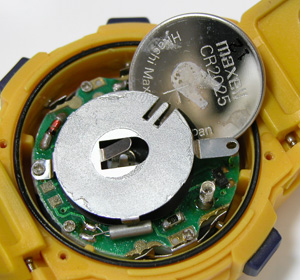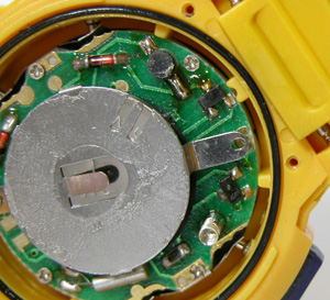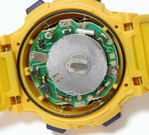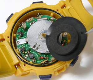 裏蓋は4本ネジですが、G-SHOCKと比べると裏蓋が薄い事とネジが細い事が分かります。これがムーブメント。
