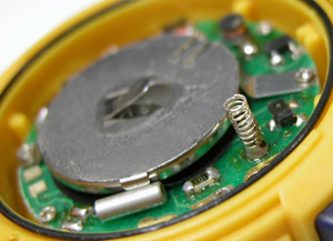 さて電池押さえを外しましょう。電池を横に抜き取ります。