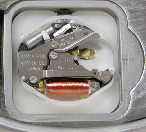 MIYOTAムーブメント。電池交換で問題なく動きます。このDIESELの腕時計ですがこんなパターンもありますから注意が必要です。