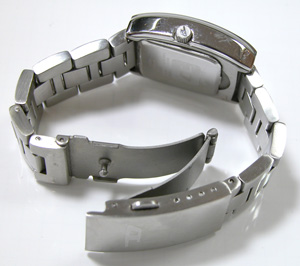 三つ折れプッシュバックル。裏蓋は”はめ込みタイプ”