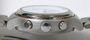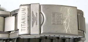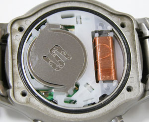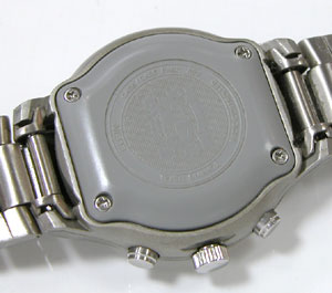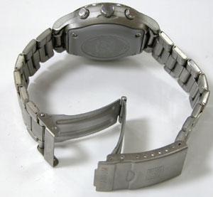 電池交換の為にはベルトを開かないと作業が難しくなります。この腕時計のベルトの開き方はバックルから外します。方法は一番下のリンクから「バックルの外し方」をご覧ください。この腕時計のベルト調整をされる方は「板バネ式」をご覧ください。簡素な裏蓋、これで”100m”耐えるのか?