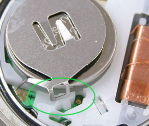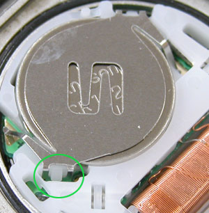 この爪で留まっているのみ。 ピンセットでこぜてやれば簡単に外れます。こういった時計は”必要以上に部品を外さない”です。マルマンの電波もそうでしたが外すと大変な事になります。