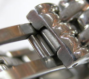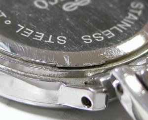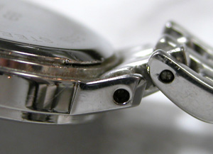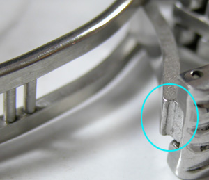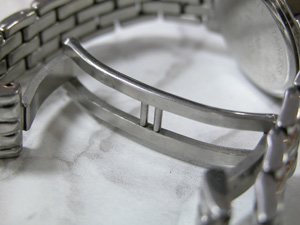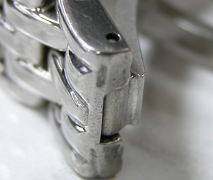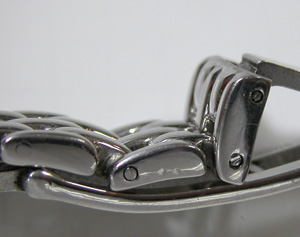 こちら極めてすり減っておりますから爪が殆ど無い・・。これはバックルのアームが重厚ではありますが素材が問題。カーブが簡単に変わってしまうと片減りする訳なんですね。