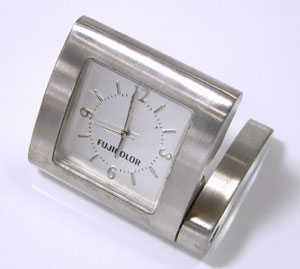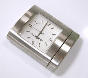 FUJICOLOR/置時計だけど腕時計ですが、ステンレス無垢でズッシリ! 足を出せば置時計になります。