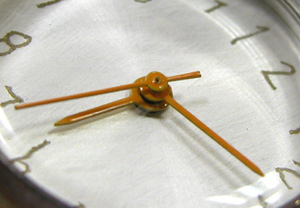 手作り腕時計電池交換です。針も既製の針にペイントしたことが分かります。