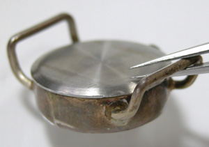 また裏蓋を開けたら簡単にガラスが外れます。ケースと接着もされておりません。電池交換でバラバラになる可能性もありますから注意が必要です