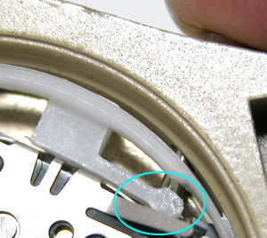 こちら側も。そこでスペーサーを見れば、何やら形状が変ですね・・・