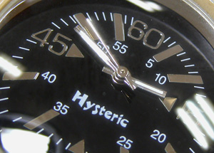 Hysteric HY453電池交換です。文字盤がずれておりますが壊れている訳ではありません。こういうデザインですね。