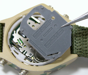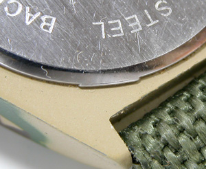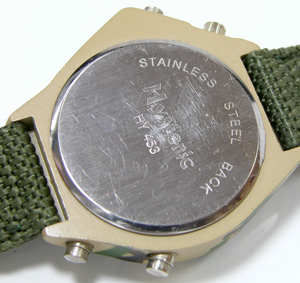 アーミーでタフそうなデザインですが裏蓋は”はめ込みタイプ”これが型番か。
