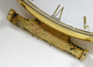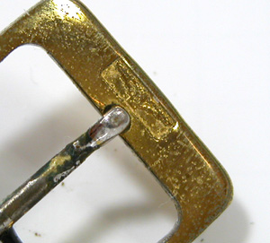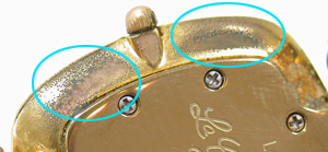 尾錠をみれば一目瞭然。マークが変。こういうサビ方はしませんね。