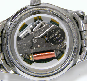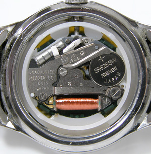 裏蓋は”はめ込みタイプ”。ミヨタムーブメント。