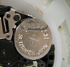 スペーサーの下がサビでグリーンになっております。電池の表面までが錆びております。