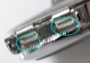 この爪の先の部分をドライバーで、起こせば簡単に開きます。