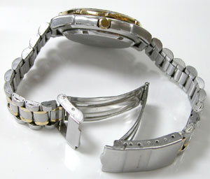 三つ折れバックルに。スクリューバックですが「300M」?は無理でしょう(;^_^A