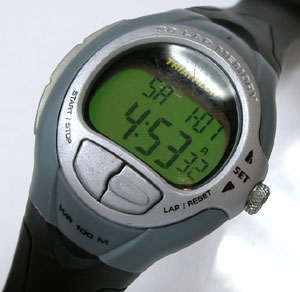 TIMEXのデジタルウォッチ。今は表示しておりますがボタン操作をすると表示が消えますので電池切れ症状ですね。