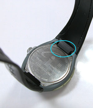 この状態では○の部分が邪魔して蓋が開けられませんからベルトは外します。ネジ留めですから外すのみ。