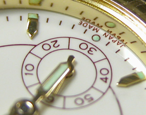 アップライトなインデックスにトラサルディのマーク。”JAPAN MADE”でケースとかの作り質感も良いです。