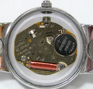 あけ口はわかりやすいですが、雑貨ウォッチらしいあけ口。 ムーブも雑貨ウォッチらしいですがクォーツですから精度は良いわけです。これは開けるのも閉めるのも堅いですから慣れない方は触らないほうが賢明ですね。