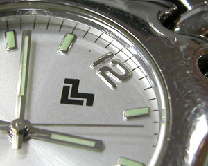 アップライトなインデックスなんですが・・・何処か安っぽい。こちら側も。ホイヤーを意識したデザインですが。