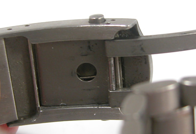 これは中で「スプリング・バネの破損」が原因でしょうが、バックルの分解は試した事がなく「バックル交換」しか方法がありませんが入手は不可。ブランド・ウォッチ全般にわたって部品の入手は限られており対応は不可となります。バックル閉まらないまま電池交換しても仕方がないでしょうから返却となります。