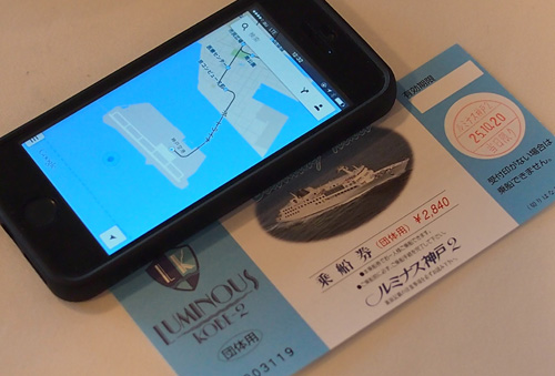 iPhoneでの位置情報の確認ですが神戸空港沖、南を航行中であることが良く分かります。