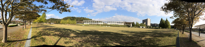 左に写った道と右の道は同じ道ですがiPhoneのパノラマ撮影でこうなります。