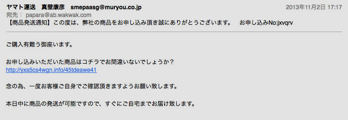 クロネコヤマトを装った、ものは今日からですか。