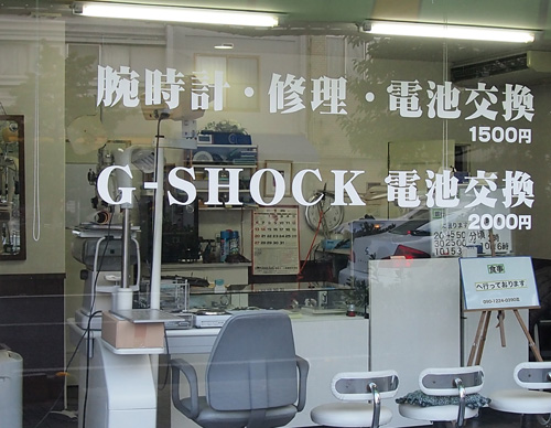 まだガラスに「腕時計・修理・電池交換」の文字が見えますが